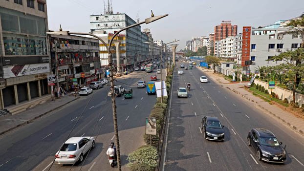 Roads in the capital wore almost a deserted look due to the three-day public holiday. The photo was taken from Gulistan of the capital on Saturday. photo: Zahiduddin Saimon