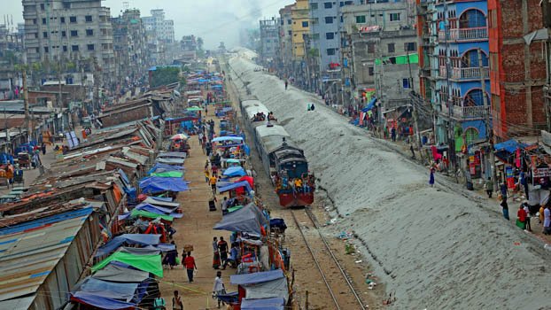 A new railway track is under construction to connect Dhaka with Padma Multipurpose Bridge.The photo was taken from Jurain area of the capital on Tuesday.