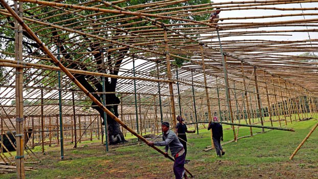 Necessary preparations are underway at National Eidgah Maidan as the main jamaat of the upcoming Eid-ul-Fitr will be held here on the High Court premises in the capital. Photo: Zahiduddin Saimon