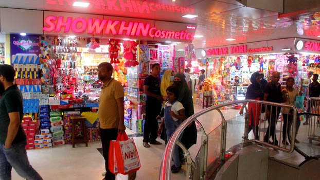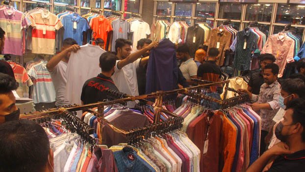 Eid shopping gets momentum in the capital with the festival starting knocking at the door. The photo was taken from Chinatown shopping mall in the capital's Naya Paltan on Tuesday.Photo: Nazmul Hasan