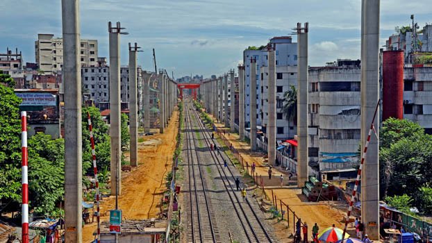 Construction work on the Elevated Expressway is going on in full swing.The photo was taken on Tuesday from the capital's Banani area. Photo: Zahiduddin Saimon