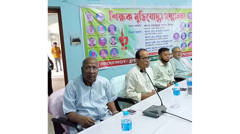 Chuadanga Zila Shikshabid Forum accorded reception to 23 freedom fighters of different educational institutes of Chuadanga. On Saturday, following one minute silent session in honor of martyred in liberation war and 15 August, the district administration handed over crests among the freedom fighters.