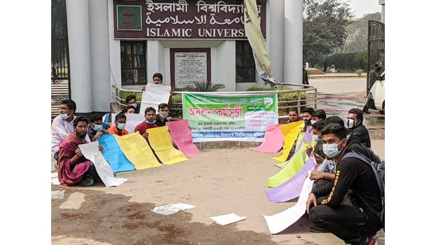 The admission seekers under academic session 2020-21 from various educational institutions formed a human chain on Islamic University (IU) campus in Kushtia on Monday to press home their two-point demand.