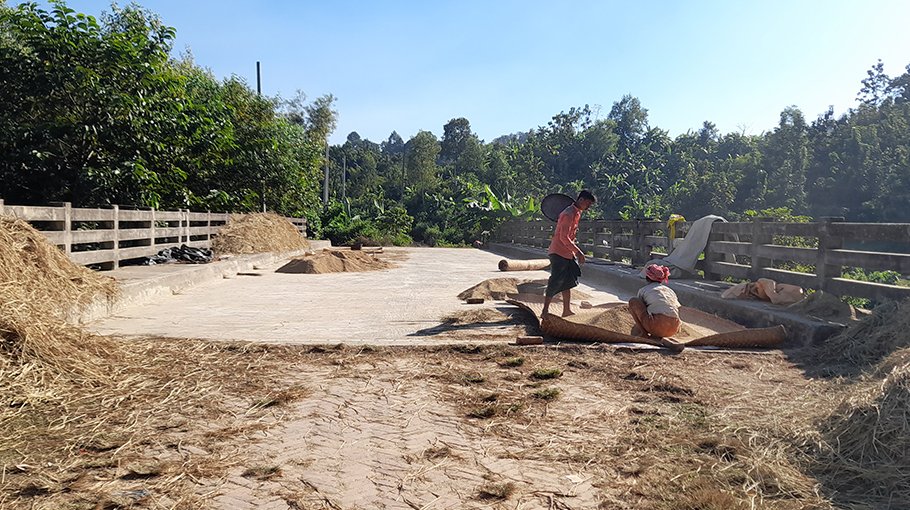 As a result, many farmers are using the bridges for threshing and drying rice in the dry season. During the dry season, some motorcycles, three-wheeled Mahindra cars use this road for carrying passengers with great risk.