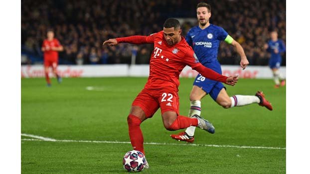 Two second-half goals in less than three minutes from Serge Gnabry and another from prolific Pole Robert Lewandowski earned Bayern Munich a thumping 3-0 victory at Chelsea in their Champions League last 16, first leg on Tuesday, Reuters describe.