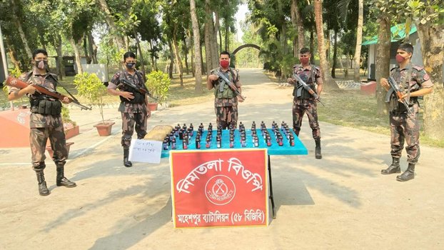 Members of Nimtola BOP under Border Guard Bangladesh (BGB) Battalion-58 recovered 70 bottles of Phensidyl and 2 kg of marijuana from Akandabaria village under Darshana Police Station in Chuadanga at around 4 am on Tuesday.