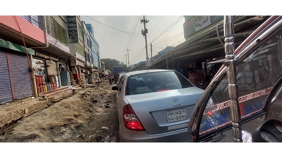 Residents and commuters in Bijoynagar Upazila of Brahmanbaria are facing severe traffic congestion and inconvenience due to prolonged and sluggish drain re-construction work in the crucial road of Amtali Bazar area.
