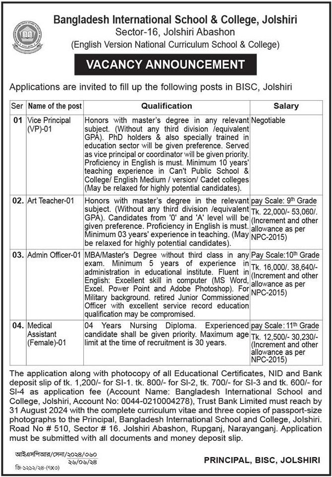 The Bangladesh International School and College BISC Office is hiring! They are inviting applications from students who are interested in their job circular, and this includes new posts as well! All relevant information about the appointment process can be found on our website bangladeshpost.net - so make sure you check it before applying to ensure your interest isn't missed out by other applicants.