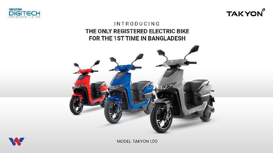 Walton’s electric bike under the brand name TAKYON got the approval of Bangladesh Road Transport Authority (BRTA). Walton e-bike is the first-ever in the segment in Bangladesh that got the BRTA approval. Like the conventional fuel-run motorbikes, the eco-friendly Walton e-bike now can legally run on the Bangladesh roads with BRTA registration. This bike will cost only 10-15 paisa per kilometer.
