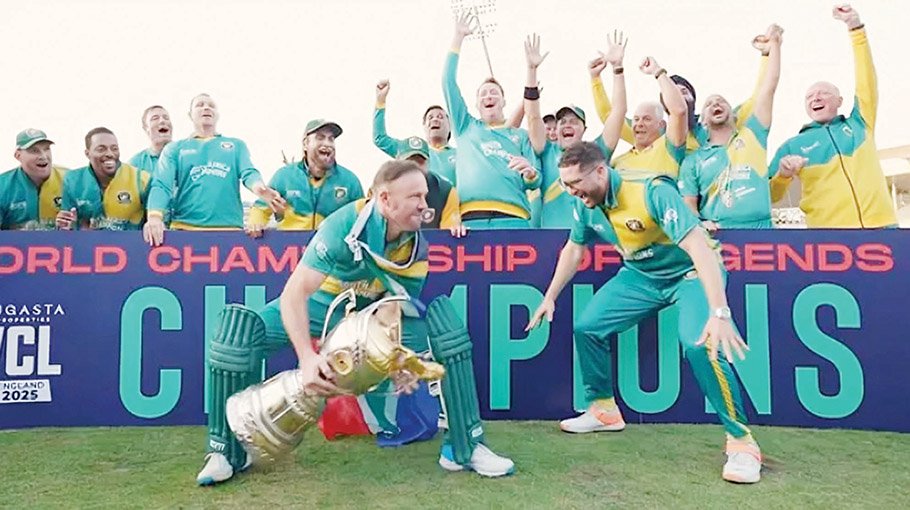 A blistering unbeaten ton from AB de Villiers helped the South Africa Champions to a convincing nine-wicket victory over the Pakistan Champions in the final of the World Championship of Legends at Edgbaston in Birmingham yesterday.