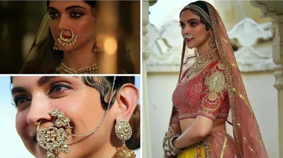 Almost five years after the release of her film Padmaavat, pictures of Deepika Padukone posing in jewellery similar to the one she sported in the film have appeared online. The pictures are reportedly from her advertisement for a jewellery brand. She is seen posing in different heavy noserings along with other traditional jewellery in the pictures.
