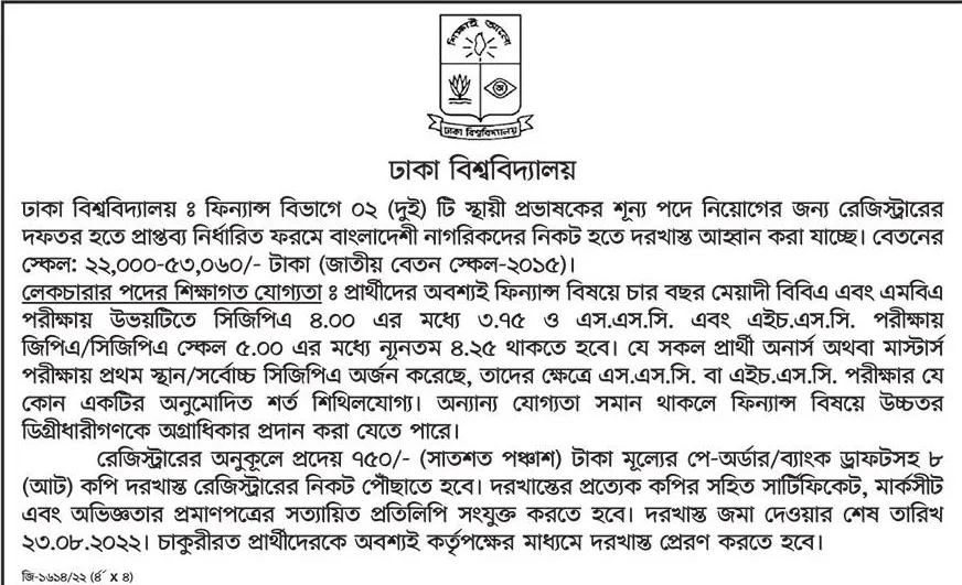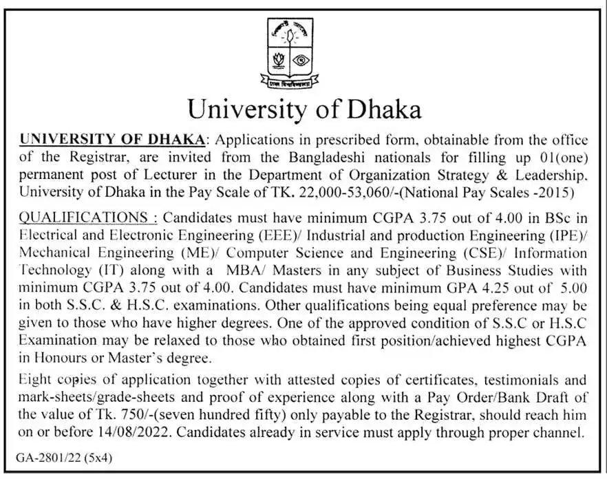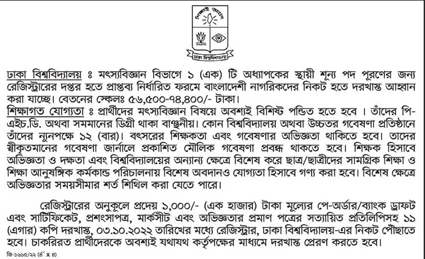 The Dhaka University is hiring! They are inviting applications from students who are interested in their job circular, and this includes new posts as well! All relevant information about the appointment process can be found on our website bangladeshpost.net - so make sure you check it before applying to ensure your interest isn't missed out by other applicants.