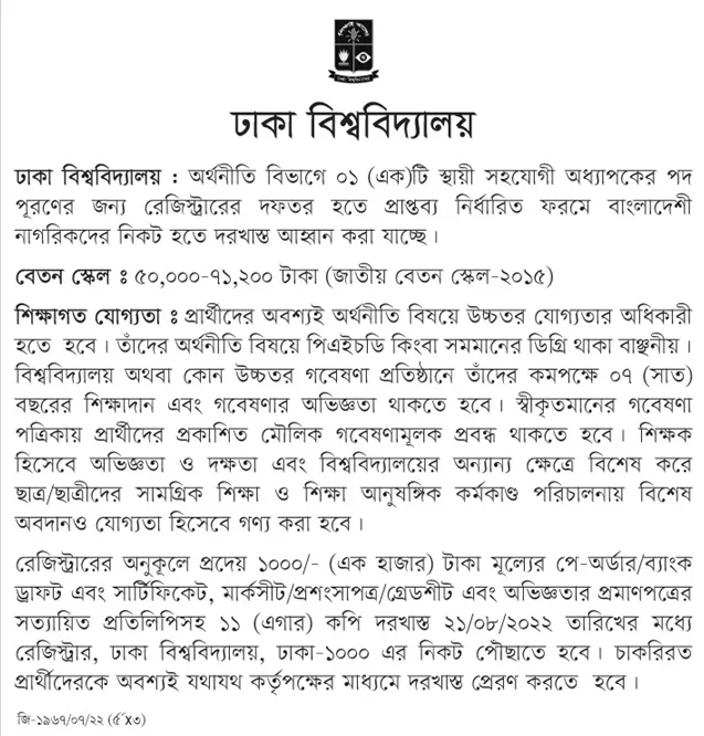 How to Apply: See DU Job Circular Image.