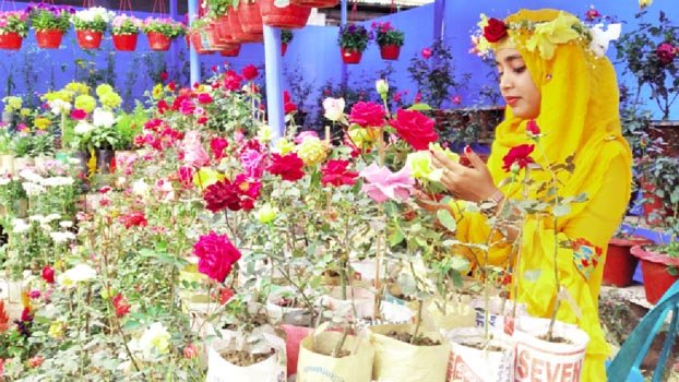 With assemblance of thousands of flowers of more than 500 species, the Flower Fair at Monibazaar area of the city was attracting a huge crowd, specially, on the occasion of the Valentine's day and the first day of Bangla month of Falgun. Baikali Sangha in cooperation with One Bank is organising this 'One Bank Flower fair-2020' for the 15th time this year.
