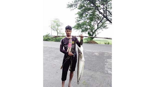 Later in the village he sold the fish at seven hundred Tk per kg. He caught the fish in the canal of Chalanbeel in the bridge area No. 8 of Hatikumurul-Bonpara highway.