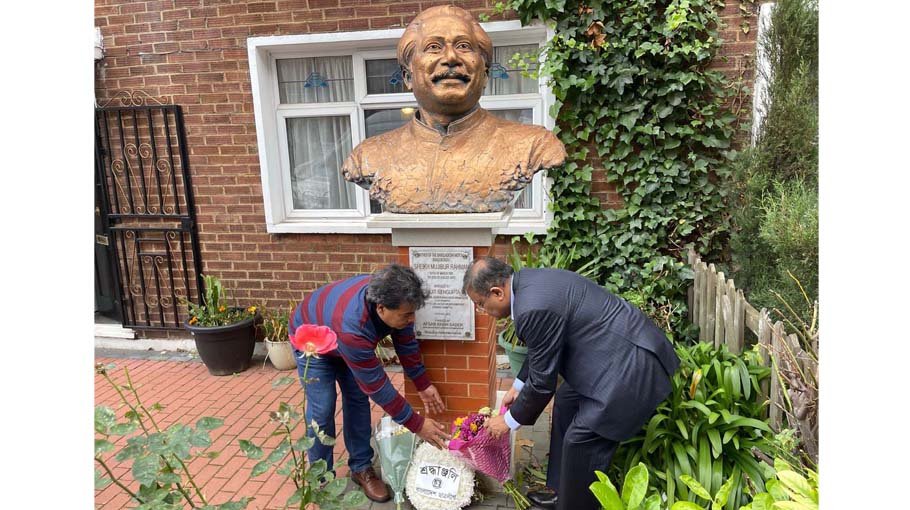 This monument of Bangabandhu Sheikh Mujibur Rahman has been placed on the premises of his residence on the initiative of UK Awami League leader Afsar Sadeq.
