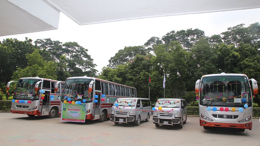 According to the transport office, 'Three new buses for students and two ac-micro buses for teachers have been purchased with the funding of the People's Republic of Bangladesh and University Grants Commission at a cost TK 2cr for mitigating the transport crisis of the university.'