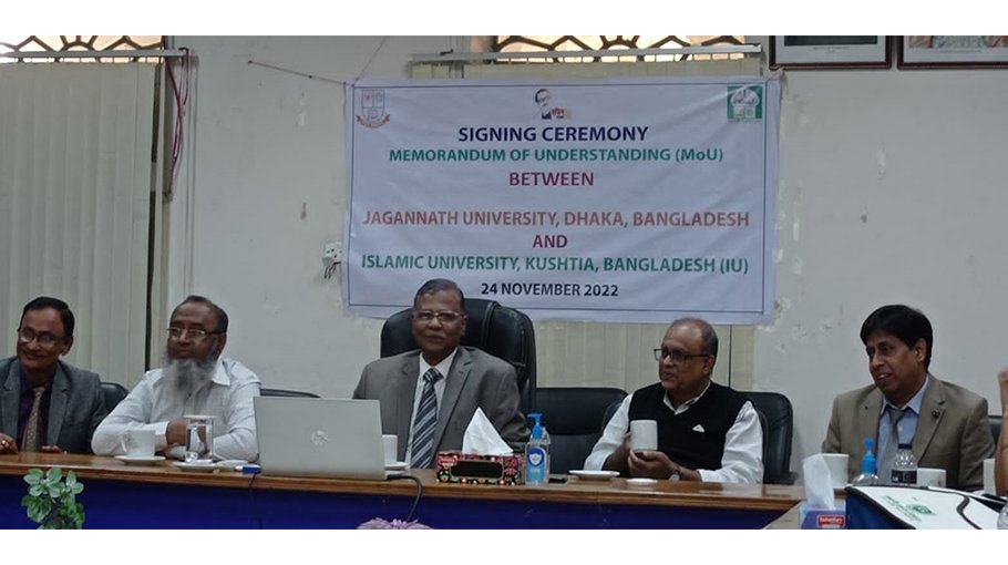 Islamic University (IU) in Kushtia and Jagannath University (JnU) signed a Memorandum of Understanding (MoU) for research collaboration at JnU Vice-chancellor conference room on 24 November.