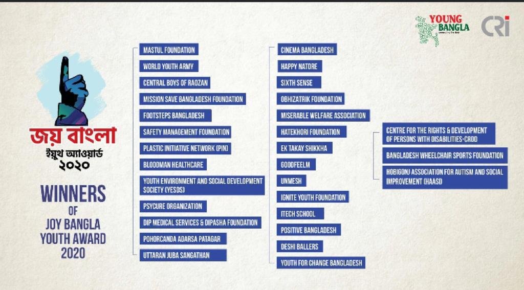 These young champions of change got their stories relayed to the nation as they were conferred with the Joy Bangla Youth Award 2020, the fourth edition of the award on Tuesday night.
