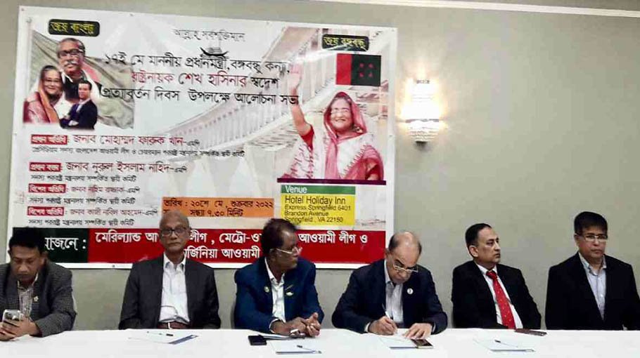 Maryland State, Metro Washington and Virginia State units of Awami League jointly organised the meeting on the occasion of the Homecoming Day of Prime Minister Sheikh Hasina.