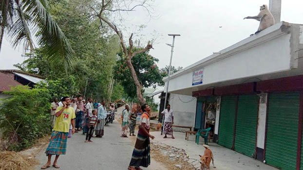 Groups of people are gathering in the Malipukur area of Malipukur upazila to see a monkey jumping from rooftops to trees in Atrai, Naogaon. People saw the monkey at Malipukur village on the Atrai-Singra road last Sunday afternoon.
