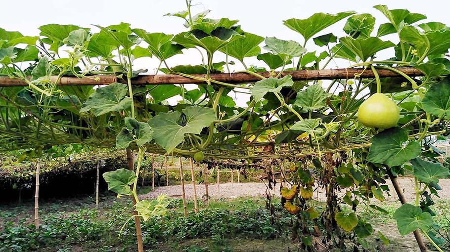 Kuddus Mia said he is cultivating the profitable bottle gourd in 12 decimal of land. He had to invest Tk 5,500 for that. Each piece of bottle gourd is selling at Tk 80 to Tk 90. He expressed his hope that this year, he will be able to earn Tk 50,000 to Tk 60,000 from selling this vegetable. He also sells the leaves of bottle gourd plant leaves at a good price.