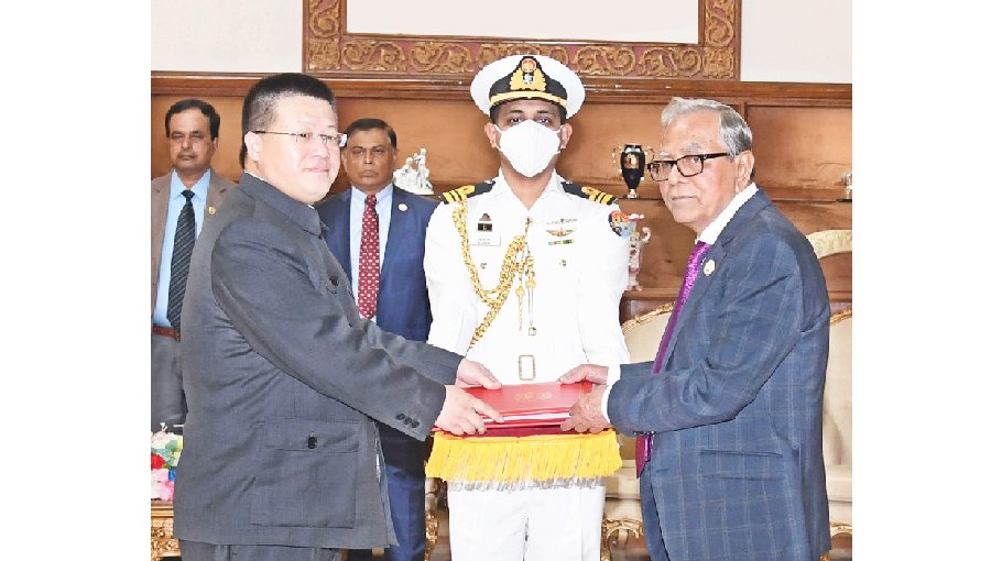 President M Abdul Hamid on Monday received credentials from the new ambassador of China to Bangladesh Yao Wen at Bangabhaban Monday evening.