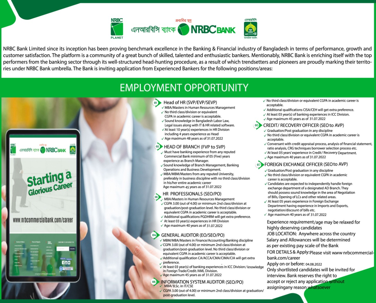 The NRBC Bank is hiring! They are inviting applications from students who are interested in their job circular, and this includes new posts as well! All relevant information about the appointment process can be found on our website bangladeshpost.net - so make sure you check it before applying to ensure your interest isn't missed out by other applicants.