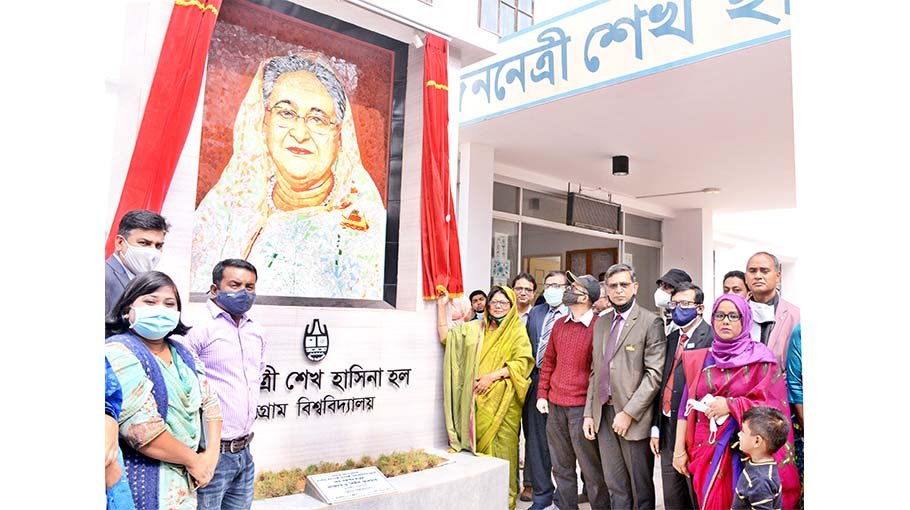 A mural of Prime Minister Sheikh Hasina has been unveiled at the Sheikh Hasina Hall of Chattogram University.