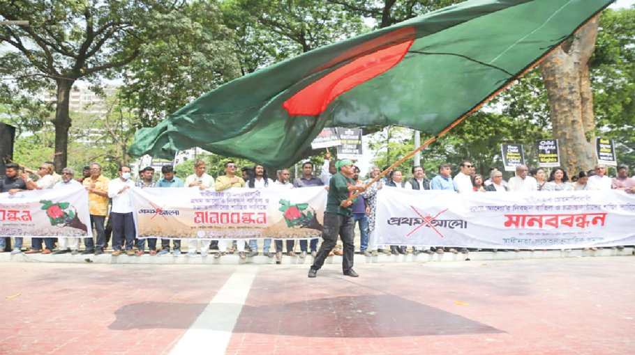 As part of their continuous protests, under the banner of ‘Swadhin-Sochetan Nagorij Somaj’ (Independent-Conscious Citizens’ Society) they formed a human chain and held a rally at the central Shaheed Minar in capital Dhaka on Thursday.