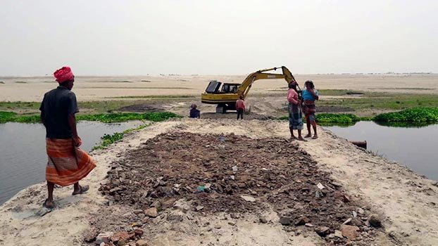An influential political leader in Rajshahi was making a road through the dead riverbed of Padma defying an order of the district administration of Rajshahi. It is learnt, the same leader had started to make the road earlier by dumping sand and soil through the river bed but the district administration had issued an order to the leader to stop the work and to remove the filled portion of the road.