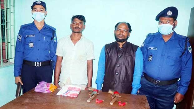 Police inforemd, acting on a tip off, they held top terrorists Farid And Ayub from Beribandh are of Ziauddin Bazaar who came to sell fire arms. Later two LGs and four rounds of cartridges were recovered by searching their bodies.