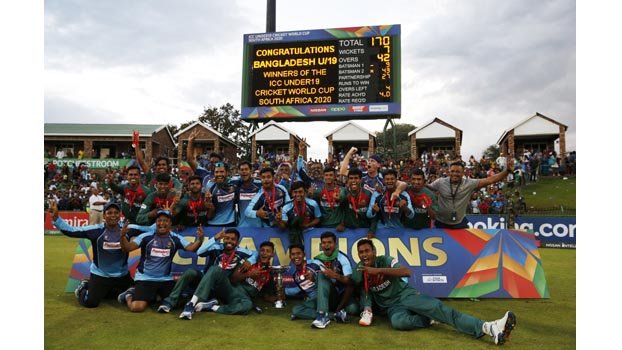 Bangladesh won the ICC Under-19 World Cup title after beating out India by three wickets in South Africa. U-19 captain Akbar Ali led Bangladesh to the title and was declared player of the match. The team credited hard work by the players and the management for their resounding victory.