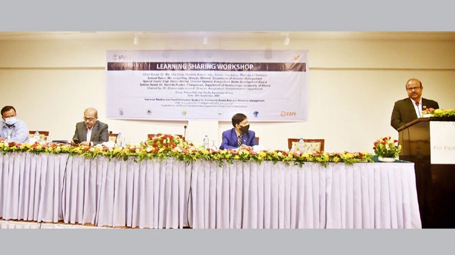 The Learning-Sharing Workshop of the project “Improved Weather and Flood Information System for Community Based Risk and Resource Management” was held on 30th September 2021 at Pan Pacific Sonargaon Hotel in Dhaka with the participation of national and international delegates from different organizations.